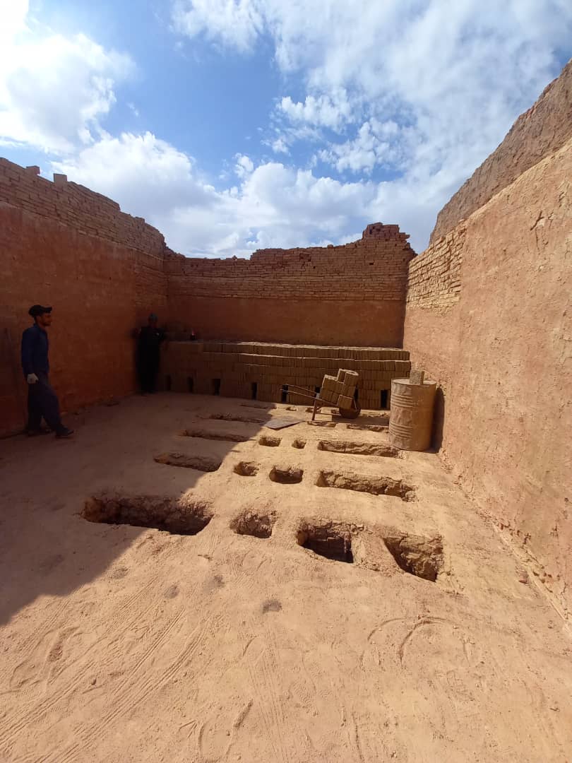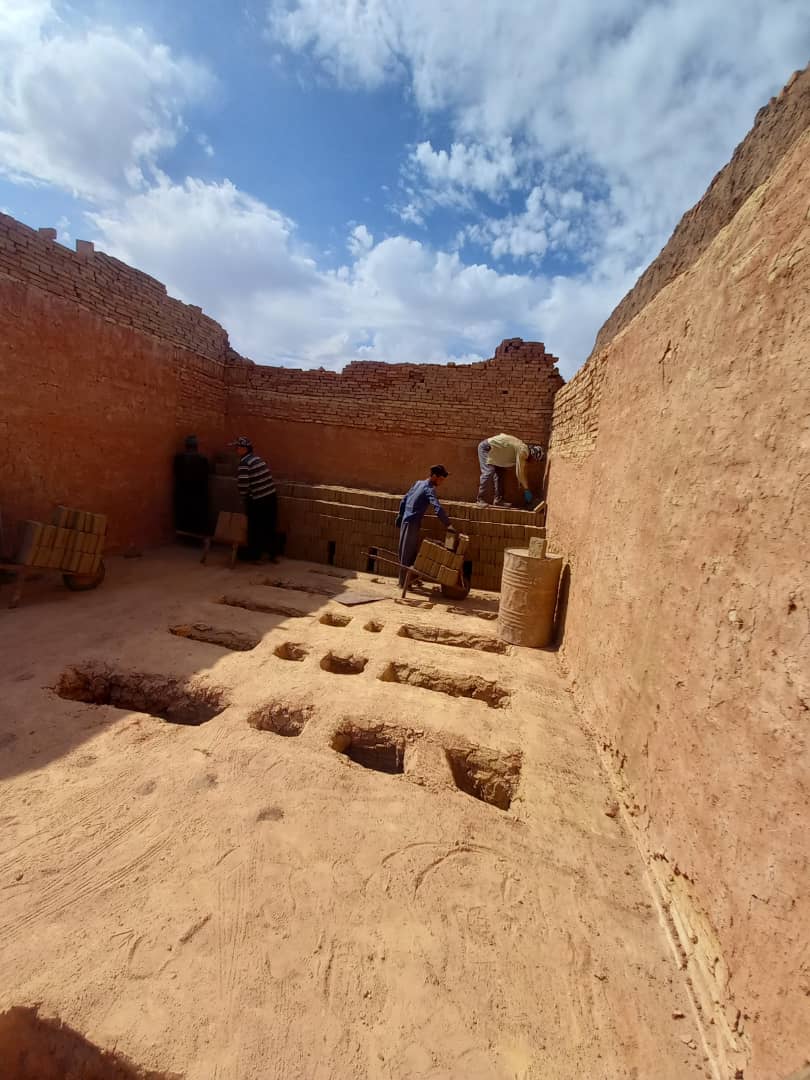 آجر سنتی آماده شده و دیواره اطراف کوره باز می شود و آماده بارگیری می شود.