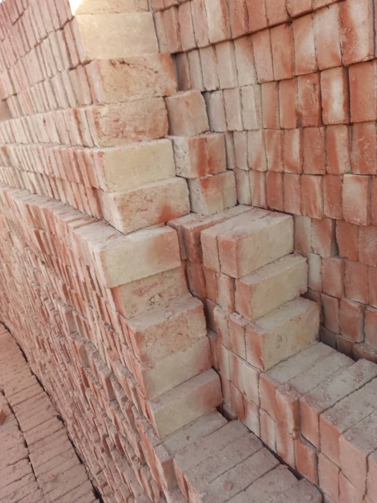 آجر های پهن شده بر روی زمین پس از چند روز به این صورت جمع می شوند(اصطاحا فنر زنی گفته می شود) طور که هوا به خوبی از لابه لای آجر ها عبور کند تا کاملا خشک شود و همچنین فضا برای تولید آجر های جدید باز شود.