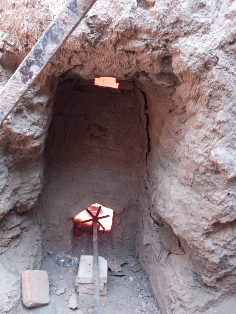 حرارت از پایین کوره به آجر ها خام یا همان خشت ها منتقل می شود تا کاملا پخته شوند.